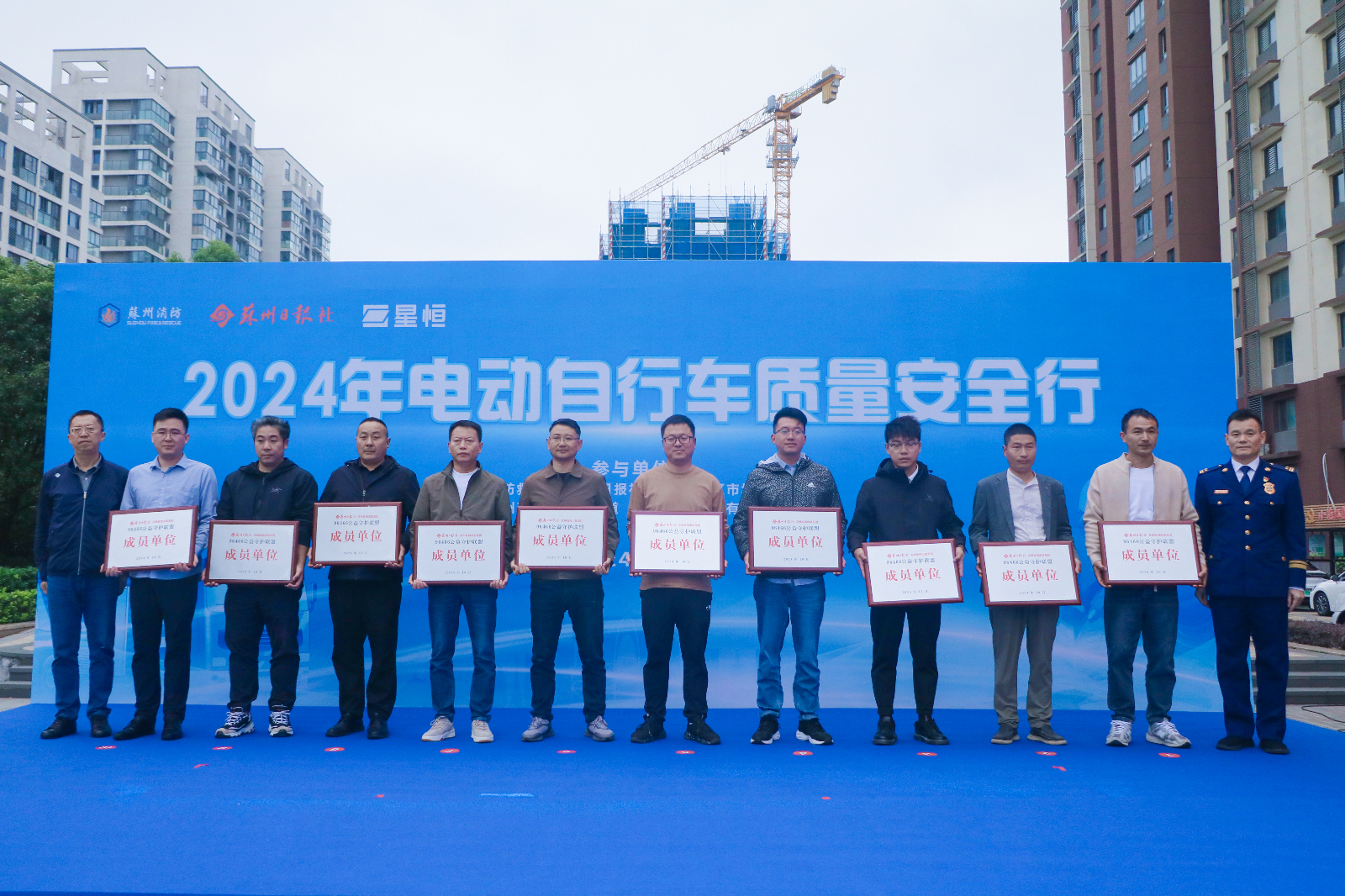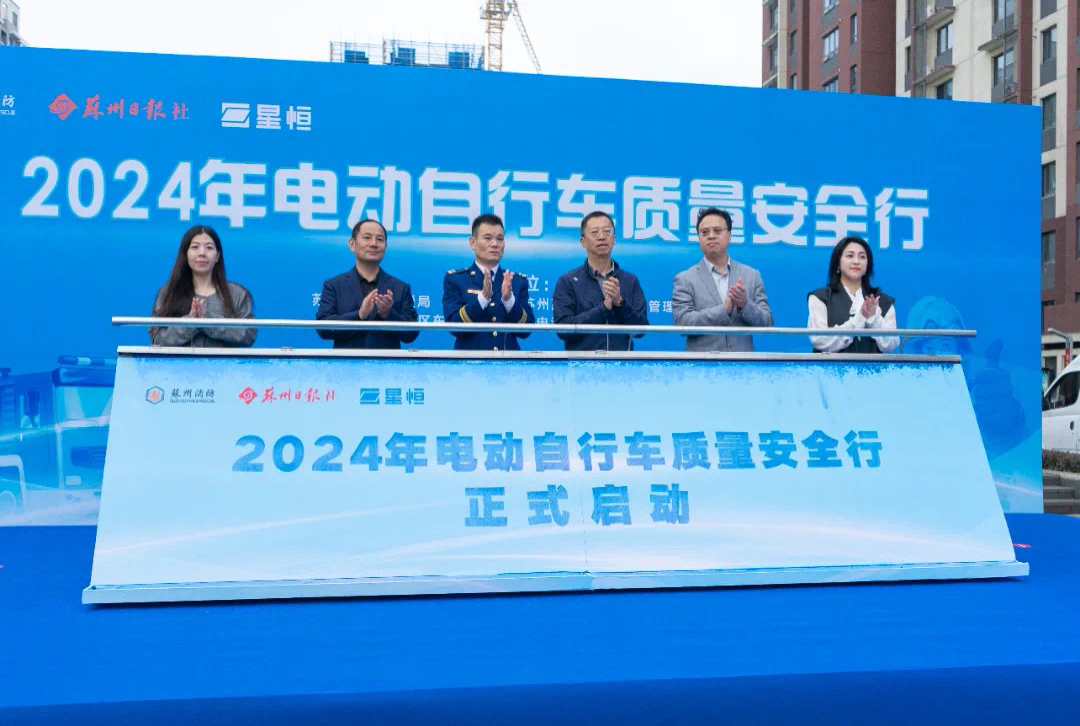 電動自行車全鏈條整治是一項系統工程,需要社會各方力量的積極參與和共同守護。活動現場,蘇州市消防救援局、蘇州日報社、蘇州高新區市監局、蘇州高新區東渚街道、蘇州市自行車電動車行業協會、星恒電源等相關負責人上臺,共同啟動“2024年電動自行車質量安全行”公益活動。