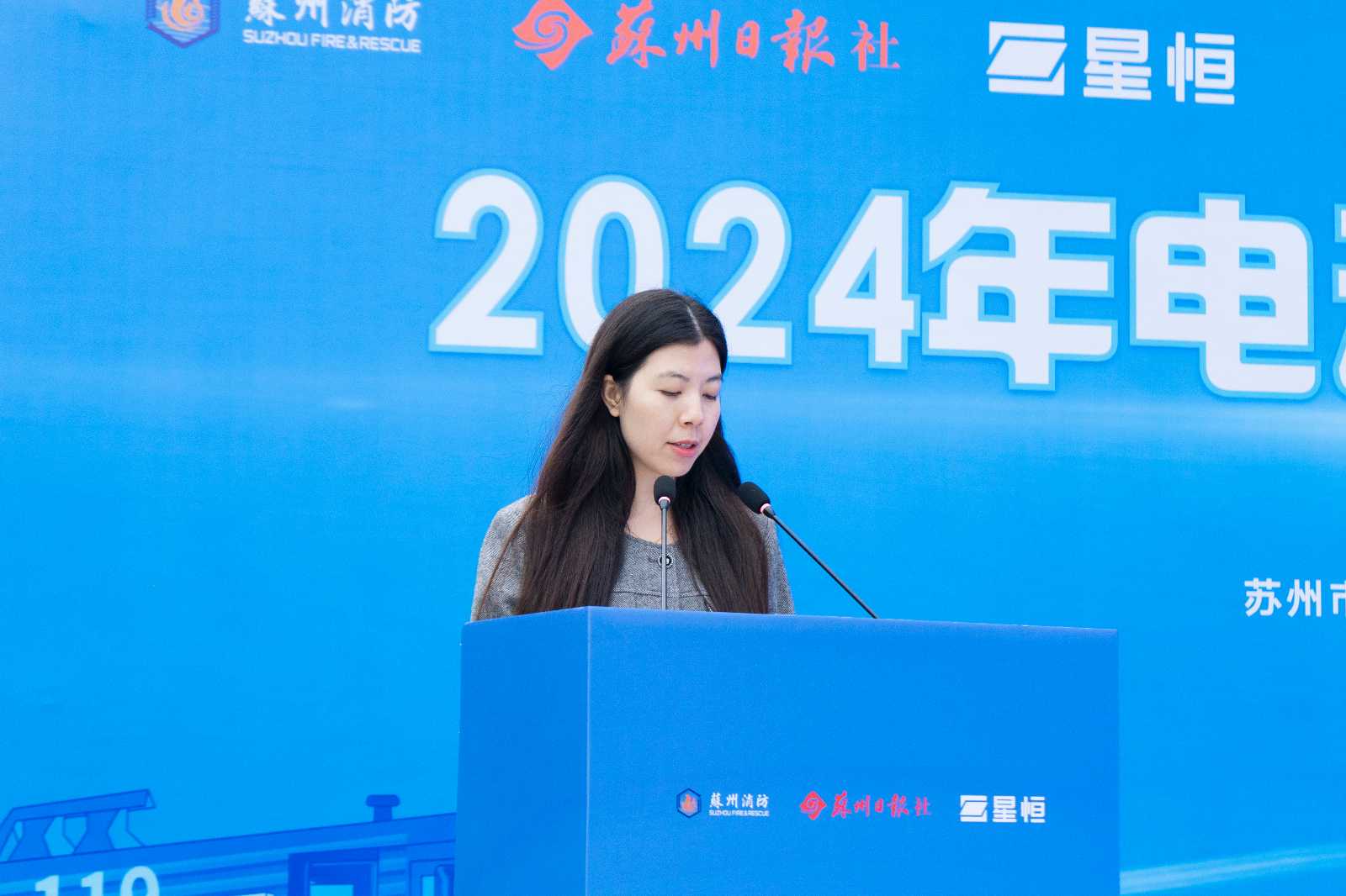 蘇州市自行車電動車行業協會副秘書長路慧敏在講話中表示,星恒電源作為蘇州市自行車電動車行業協會常務理事單位,積極承擔社會責任,組織此次活動,為蘇州市民的安全出行貢獻力量。協會作為連接政府、行業和企業的橋梁與紐帶,將積極發揮組織作用,呼吁行業從業者自覺執行標準規范,倡導合規經營,進一步鞏固蘇州市電動自行車安全隱患全鏈條整治專項工作的成果。