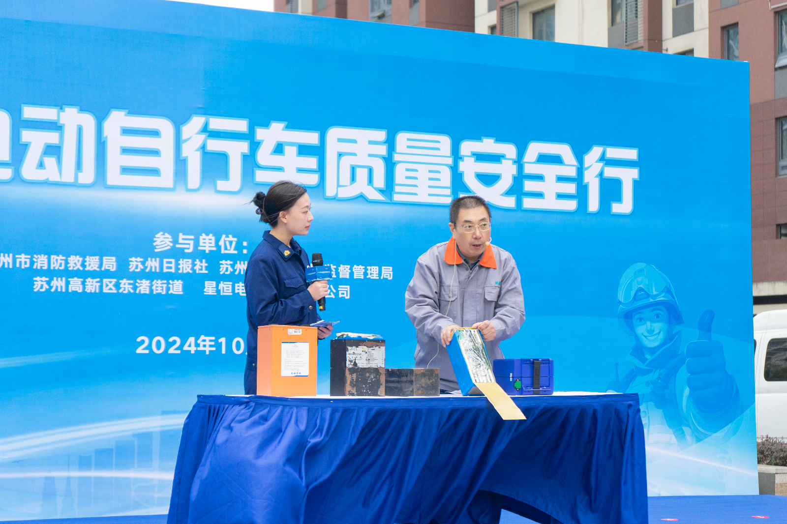 10月22日,蘇州日報社聯合星恒電源,在蘇州市消防救援局、蘇州市高新區市場監督局的指導下,啟動了“2024年電動自行車質量安全行”公益活動,并通過江蘇消防、引力播App、蘇州消防、星恒鋰電池等多個直播平臺,就全面認識超標電池、偽劣鋰電池的危害,辨別正規鋰電池和偽劣鋰電池等方面,向廣大用戶科普科學選購、使用電動自行車的相關知識,引導消費者使用合規合標電池,助力電動自行車安全隱患全鏈條整治行動落地。