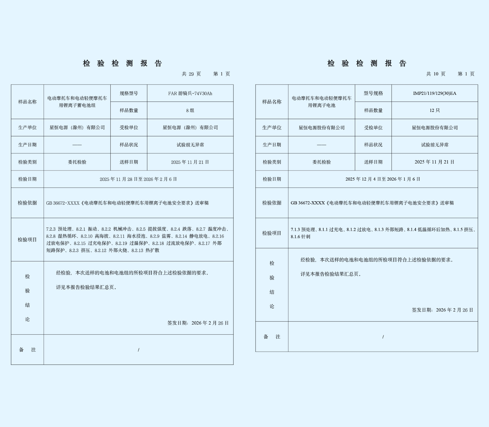隨著電摩鋰電池國強標報批稿完成公示,標準出臺已近在眼前,未來電摩鋰電池市場將建立統一的強制性安全準入門檻。星恒電源將繼續推進電摩鋰電池的技術研發與生產制造,為用戶提供符合國家標準的鋰電池產品,助力行業健康發展。