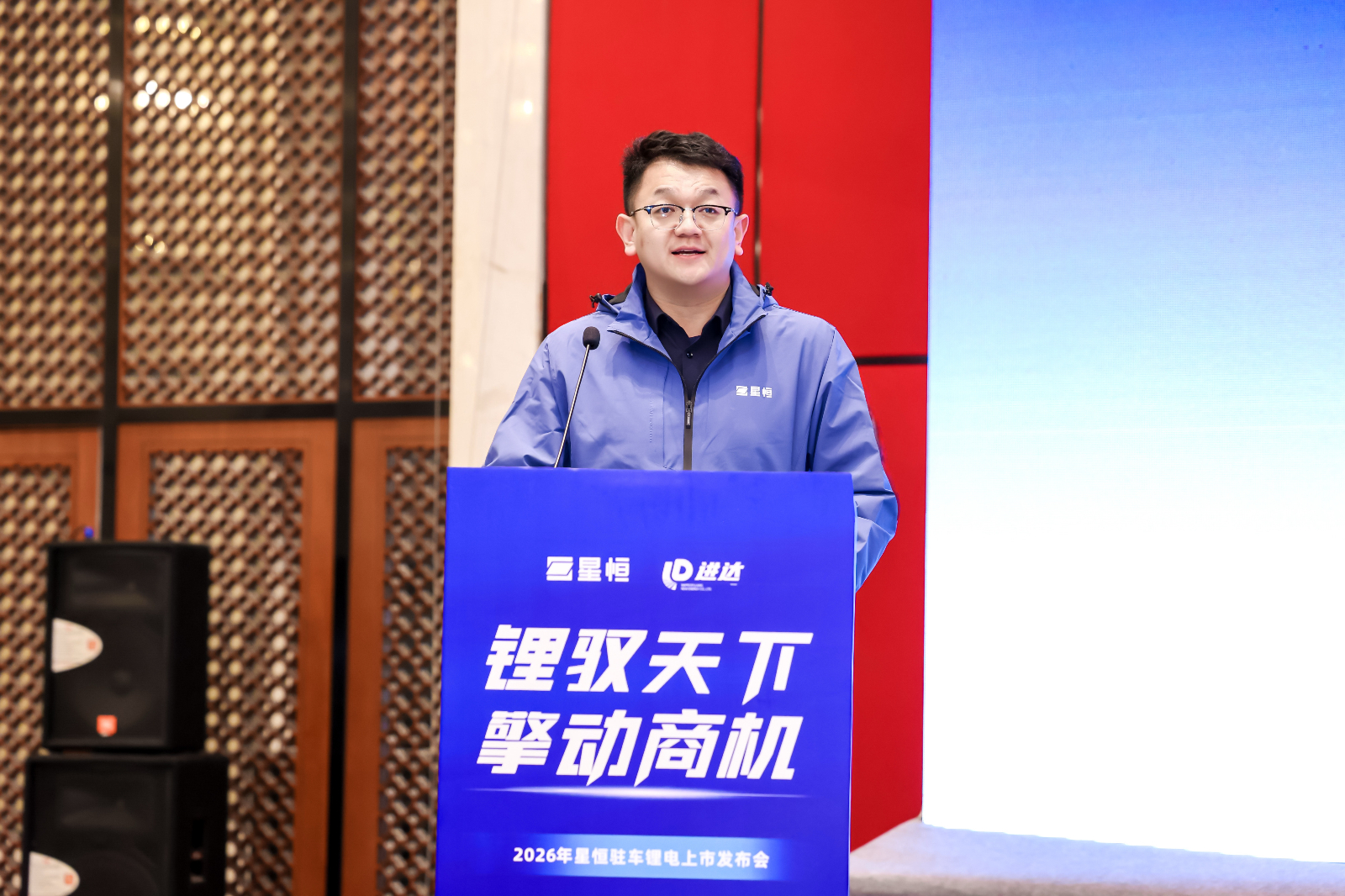 發(fā)布會上,星恒電源國內(nèi)輕動力出行事業(yè)部總經(jīng)理趙輝發(fā)表致辭。他表示,星恒與進達旨在打通從電芯研發(fā)到終端應用、從生產(chǎn)制造到售后服務的完整鏈路,通過資源深度整合,為商用車市場提供更具系統(tǒng)適配性的駐車電源解決方案。